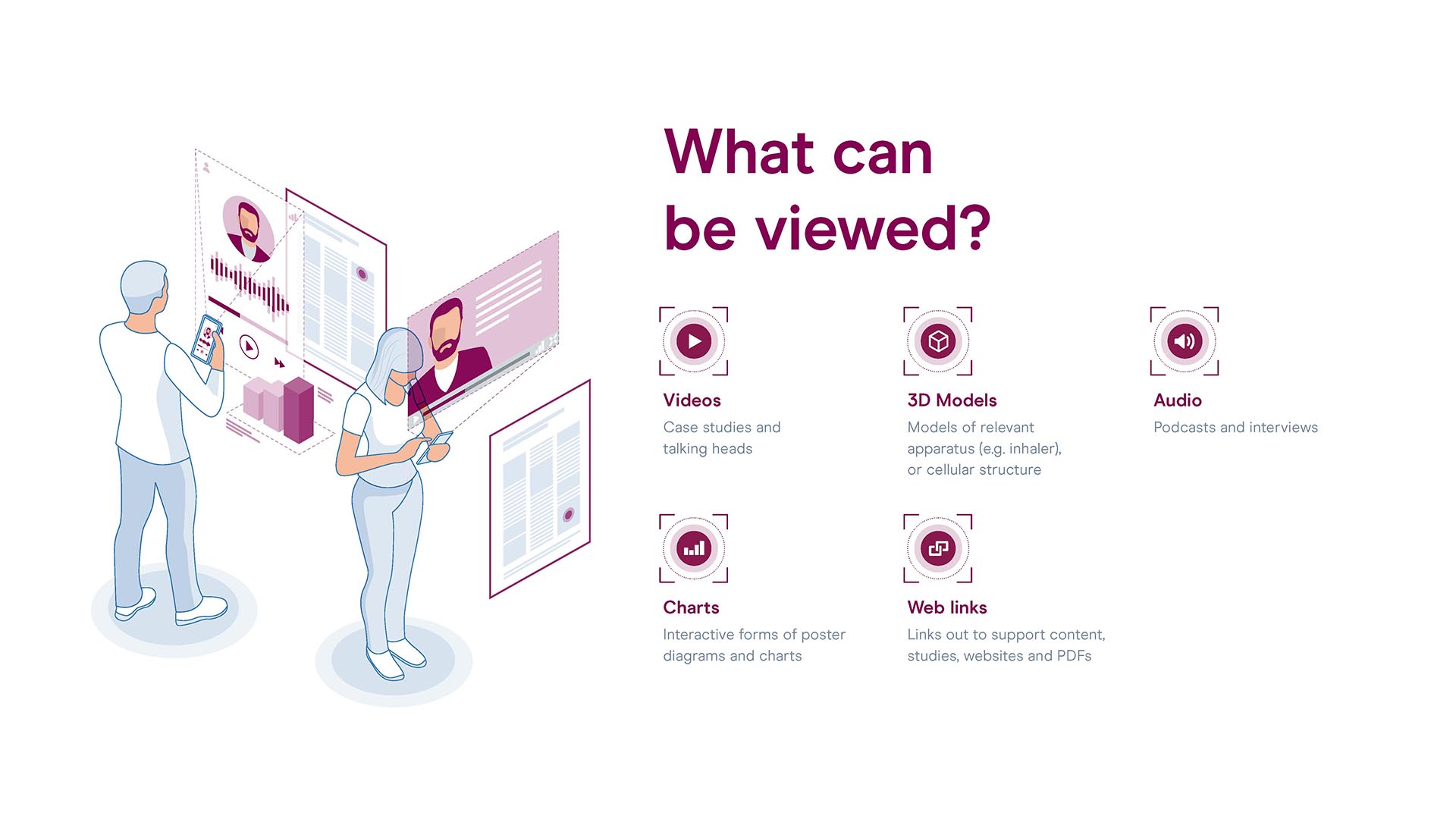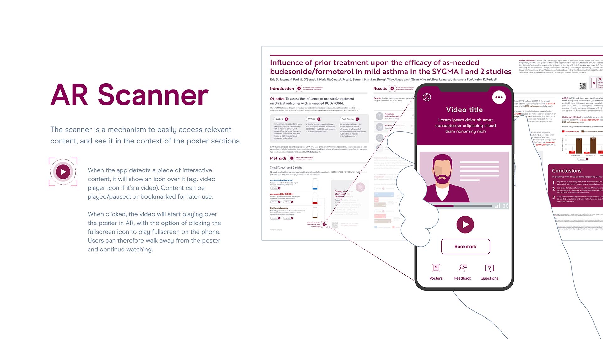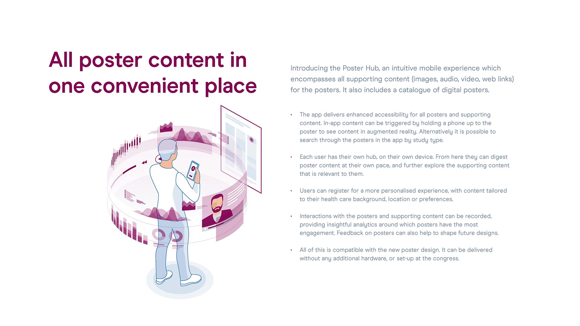 • Interactive technology that allowed users to scan specific sections of the poster to explore more detailed data, view supporting multimedia content, and access related studies.